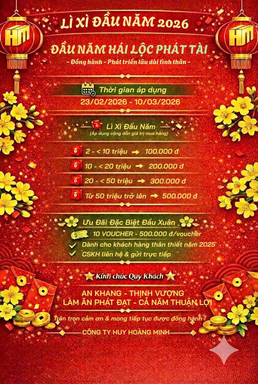Để khởi đầu một năm Bính Ngọ rực rỡ, Công ty cao su nhựa Huy Hoàng Minh xin gửi đến Quý khách chương trình "Hái lộc đầu năm" thay lời tri ân sâu sắc.