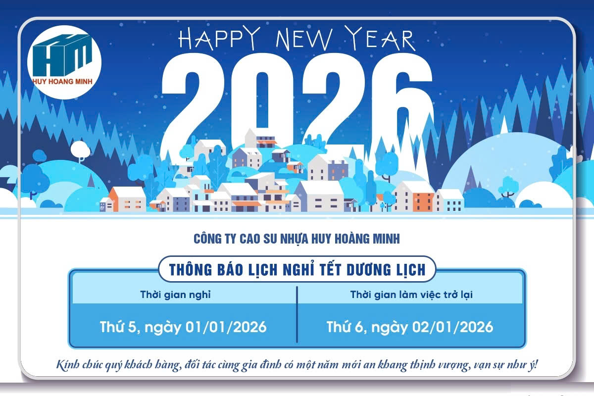Nhân dịp Tết Dương lịch năm 2026, Công ty Cao su Nhựa Huy Hoàng Minh xin gửi lời chào trân trọng và lời chúc sức khỏe đến Quý khách hàng, Quý đối tác đã luôn tin tưởng, đồng hành cùng Công ty chúng tôi trong thời gian qua.